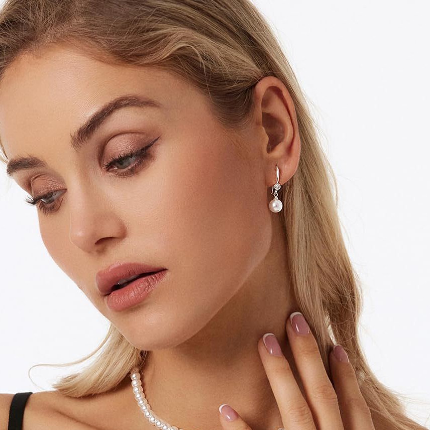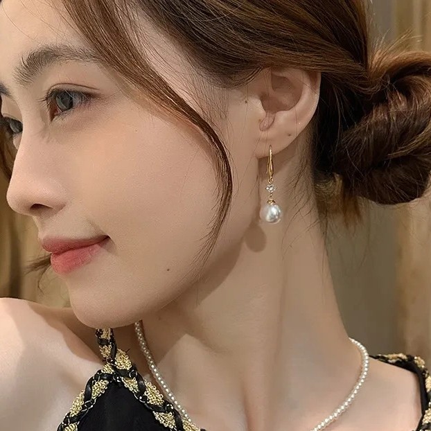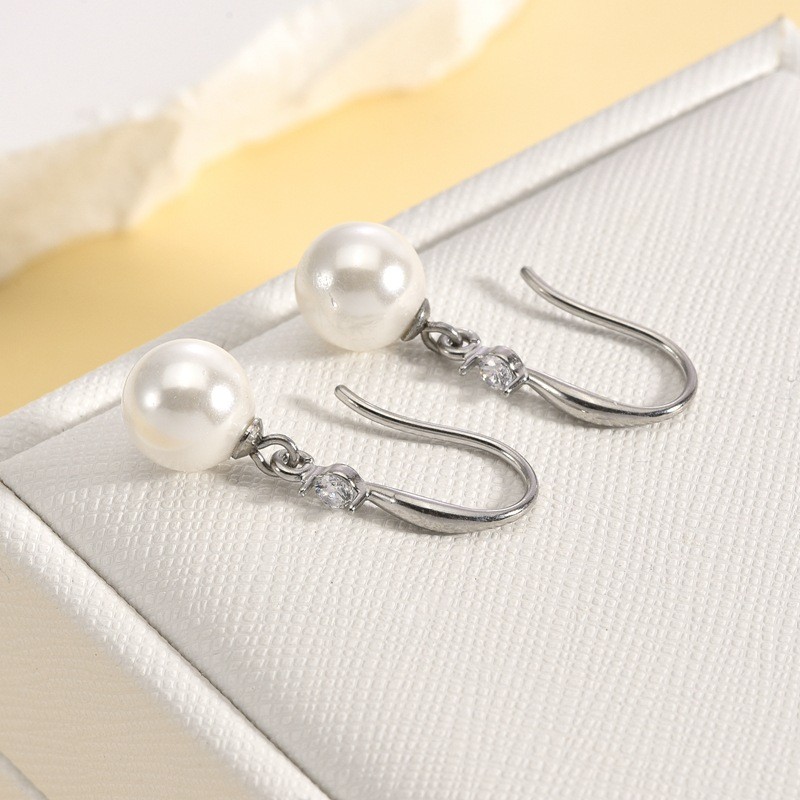 Home >Earrings >Mirad style pearl earrings with zircon inlay, high-end and niche design for women's earrings